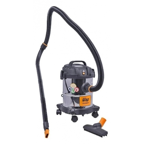 Aspirador De Pó e Água Wap 1400W 127V GTW Inox 12 - 12 Litros Aço Inoxidável, com máximo desempenho, ideal para colchão, tapete, sofá, piso, estofado e carro!! Com um filtro de pano lavável , é bom para lugares altos ou de difícil acesso com 3 extensoras retas e com o fio de alcance de 5 Metros sem ter necessidade de trocar de tomada, agilizando e economizando seu tempo pra ter o melhor desempenho. Principais características: - Voltagem: (127V); - Certificação do INMETRO: Sim; - Potência elétrica:1400 W; - Motor: Universal; - Nível de ruído: 93 dB(A); - Vácuo: 160 mbar; - Tipo de filtro: Pano Lavável e Espuma; - Níveis de filtragem: 2; - Aspira água?: Sim; - Bocal de sopro?: Sim; - Capacidade total: 12 L; - A bateria / sem fio?: Não; - Peso líquido: 3,4 kg; - Peso bruto: 4 kg; - Dimensões do produto (C x L x A): 27 x 27 x 45 cm; - Dimensões da caixa (C x L x A): 28 x 28 x 42,5 cm; - Cor: Inox com Preto e Amarelo. Componentes - Cabo elétrico 2,5 metros; - Alça para transporte; - 4 Rodízios para transporte; - Porta acessórios; - Boia para proteção do motor; - Bocal de sopro; - Regulagem de sucção. Conteúdo da embalagem:- 1 Aspirador de pó e água Wap 1400W 127VInformações adicionais: - Fabricante: WAP - Código do produto: FW005041 - Garantia: 12 meses