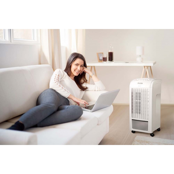 O climatizador de ar Elgin Smart é bom para resfriar, ventilar, umidificar e purificar o ar. Possui a função ionizador, que ao acionada, emite íons negativos no ambiente com a finalidade de melhorar o bem estar dos usuário, combatendo até 99% a proliferação de fungos, ácaros, vírus e bactérias. Com um design compacto, o Climatizador Smart da Elgin é fácil de guardar e transportar , além de proporcionar um ambiente arejado e saudável. O Climatizador serve para quem busca qualidade e preço baixo, e acima de tudo bem estar. PRINCIPAIS CARACTERÍSTICAS - 3 Em 1: O Climatizador Smart ventila, ioniza e climatiza o ar eliminando até 99% das bactérias, vírus e fungos presentes no ar do ambiente, se tornando extremamente útil e eficiente para seu dia a dia. - Capacidade de 3,5 L: A praticidade continua com a bandeja removível e reservatório de capacidade de 3,5 L, garantindo eficiência na climatização e facilidade na adição da água, com ate mesmo a opção de colocar gelo para refrescar ainda mais o ambiente. - Um ambiente mais saudável: Os íons combatem as bactérias e os fungos que o ambiente pode conter. Assim, seu ambiente fica muito mais seguro para todos que nele estiverem, ideal para locais com crianças, pessoas de idade e para todos que querem o beneficio de um ambiente saudável. - Prático e elegante: Além de possuir um design refinado, o climatizador Smart é extremamente prático devido ao seu tamanho, alça de transporte e rodinha de mobilidade, para levar ele a todo ambiente que quiser. - Aletas (Pás) com movimento automático: As pás com movimento automático faz que aumente o seu campo de ventilação, assim todo o ambiente fique arejado. - Bandeja Removível: Facilitando a limpeza da bandeja e seu manuseio, com capacidade de 3,5 Litros. ESPECIFICAÇÃO TÉCNICA - Vazão de Ar: 300 m3/h - Capacidade do Tanque: 3,5 - Voltagem: 220v (Não é BIVOLT) - Altura: 56,5 cm - Largura: 24,5 cm - Comprimento : 28 cm - Peso liquido: 5 KG CONTEÚDO DA EMBALAGEM - 1 Climatizador de Ar Smart - 1 Manual de instruções INFORMAÇÕES ADICIONAIS: - Fabricante: Elgin - Código do produto:FSFN04N2IA - Garantia: 12 meses